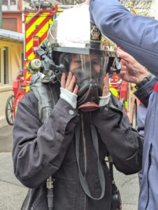 - En décembre, les élèves ont visité la caserne et certains ont endossé l’équipement des sapeurs-pompiers :