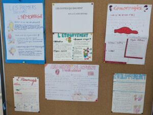 - Les élèves ont ensuite conçu des affiches de premiers secours qui ont été exposées au CDI :
