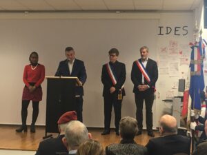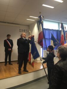 M. Coscas a ensuite remercié les membres du Souvenir français et les anciens combattants d’être aussi présents auprès des jeunes et de transmettre notre mémoire, saluant le travail de M. Philipp, “inlassable et infatigable défenseur de la mémoire” et de M. Bogart, “le porteur de projet, avec sa classe défense”. Il s’est réjoui de la réalisation de ce projet engagé en coopération avec son adjoint M. Brunel plusieurs mois auparavant.